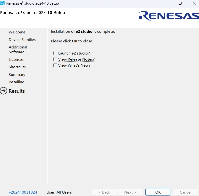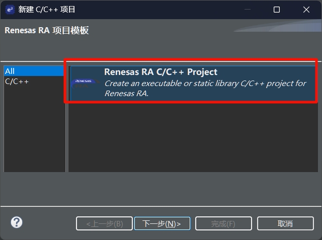 双击可执行程序,按下图所示进行配置,注意在Device Famlies 选择第一个 RA,其余配置均用默认。