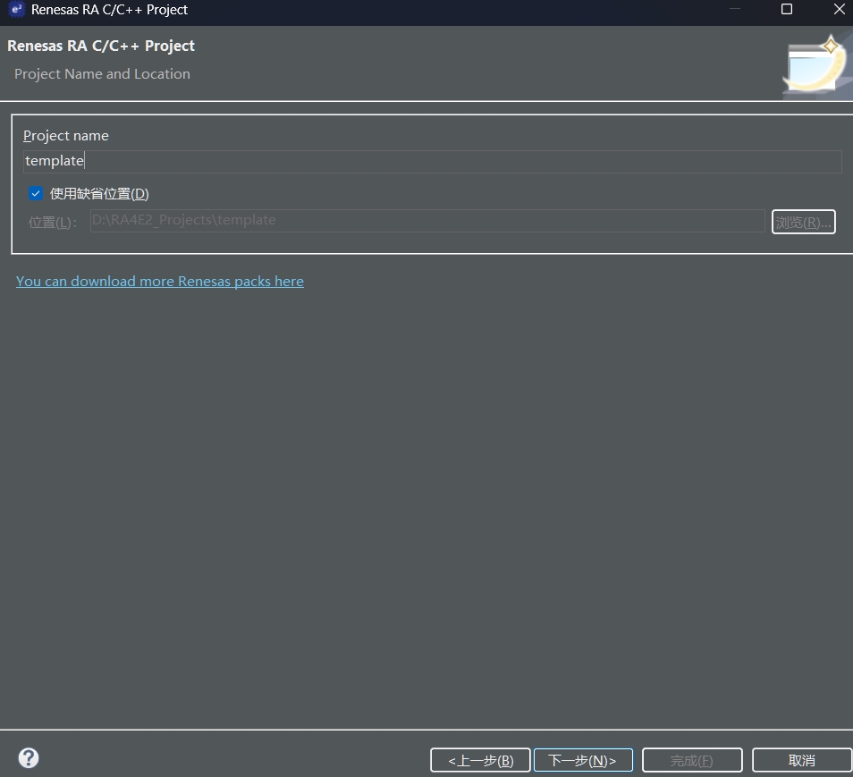 解决方法:在github页面https://github.com/renesas/fsp/releases下载FSP_Packs_v5.6.0.exe并安装到e2s所在文件夹下,重启e2s再次创建工程即可。